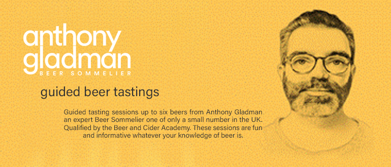 Guided tasting sessions, up to 6 beers from Anthony Gladman. An expert Beer Sommelier, one of only a small number in the UK. Qualified by the Beer and Cider Academy.